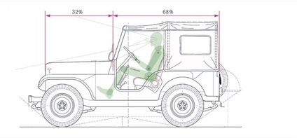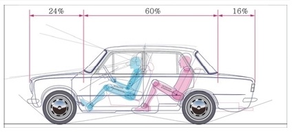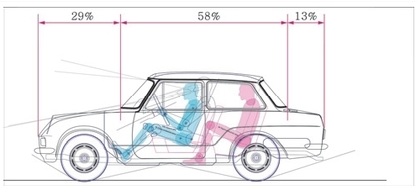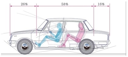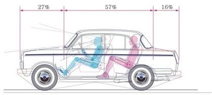 「피아트 124」 승용차의 차체 크기는 B-세그먼트와 C-세그먼트 사이의 소형 승용차이지만, 패키지 레이아웃을 재구성한 Fig. 28에서 1열 운전석과 2열 좌석 모두 서구 성인 남성 규격 SAE 95 %ile의 머리공간과 다리 공간 확보를 충족시키는 크기이다.